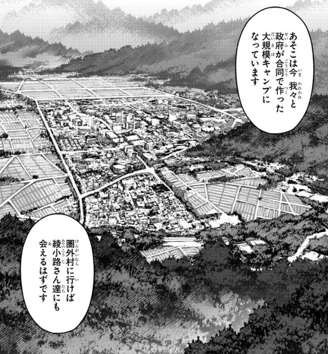 Out of Range Village (圏外村) is a village located in northern Japan to give shelter to former Darwin's Game players and their families.